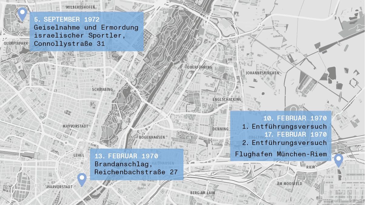 Schon zwei Jahre zuvor, im Februar 1970, war München Schauplatz von internationalem Terrorismus und antisemitischer Gewalt. Innerhalb weniger Tage hatten zwei palästinensische Kommandos versucht, in München-Riem israelische Flugzeuge in ihre Gewalt zu bringen. Bei dem Anschlag vom 10. Februar wurde der Passagier Arie Katzenstein ermordet.